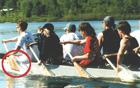 • Make sure your top hand does not cross into the boat during recovery. Thinking about your top hand being over the water will help you keep your weight on the paddle and outside of the boat.